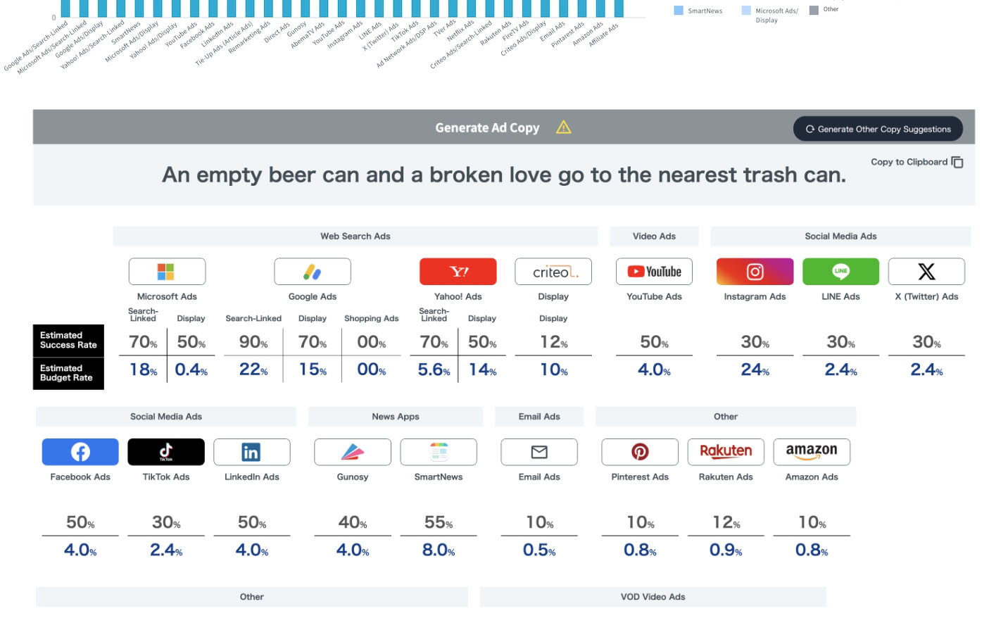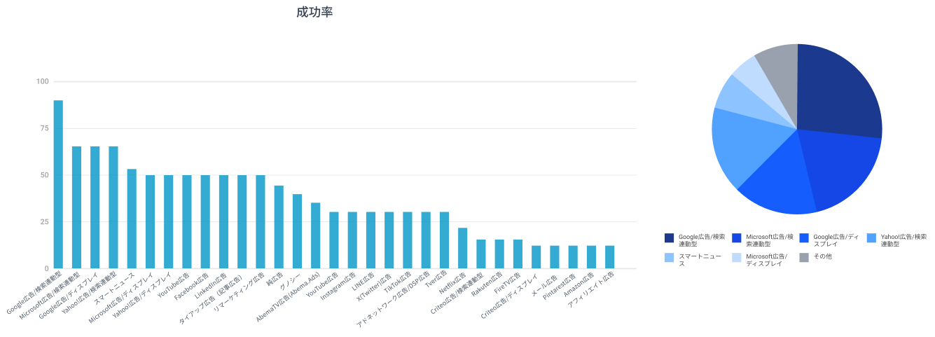 成功率と予算配分を表示するので、あなたが気付かなかった媒体で期待以上の効果も…
